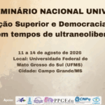 Estão abertas as inscrições para o XXXIII Seminário Nacional da Rede Universitas/BR, que será realizado de 11 a 14 de agosto, na Cidade Universitária da UFMS. Com o tema Educação Superior e democracia: resistências em tempos de ultraneoliberalismo, o evento é organizado pelo Programa de Pós-Graduação em Educação (PPGEdu/Faed), em parceria com a rede nacional […]